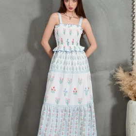 Summer Women Floral Slip Dress Sleeveless Swing Pleated Long Dress for Cocktail Party Bohemian Casual Retro Sundress