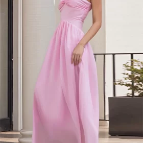 Women Party Long Dress Solid Color Tube Dress Summer Fashion Backless Casual Strapless Pleated Dress with Choker Scarf