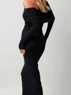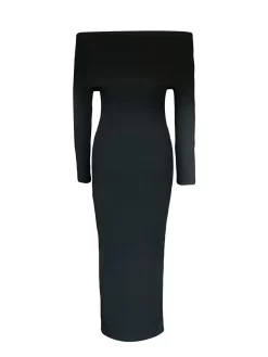 Women Autumn Long Dress Long Sleeve Off Shoulder Ruched Bodycon Pencil Dress for Evening Dress Party Elegant Chic Dresses