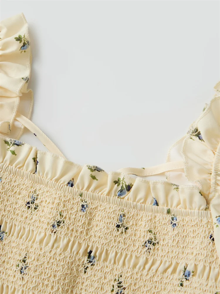 Women Mini A-Line Dress Casual Summer Floral Print/Contrast Color Square Neck Puff Sleeve Party Dress for Streetwear